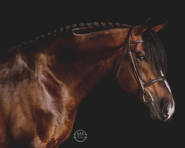 Bandelero JSF embodies the modern sport-horse ideal. He offers exceptional length of leg, an elegant head, and a balanced topline and conformation - a combination that gives him a classical, athletic presence ideal for sport disciplines. He demonstrates excellent self carriage and open shoulder, with good push from behind . Over fences, he reliably displays a natural talent with exceptional form and balance. Temperament wise, Bandelero JSF is known for being gentle, people-friendly, and easy to handle.